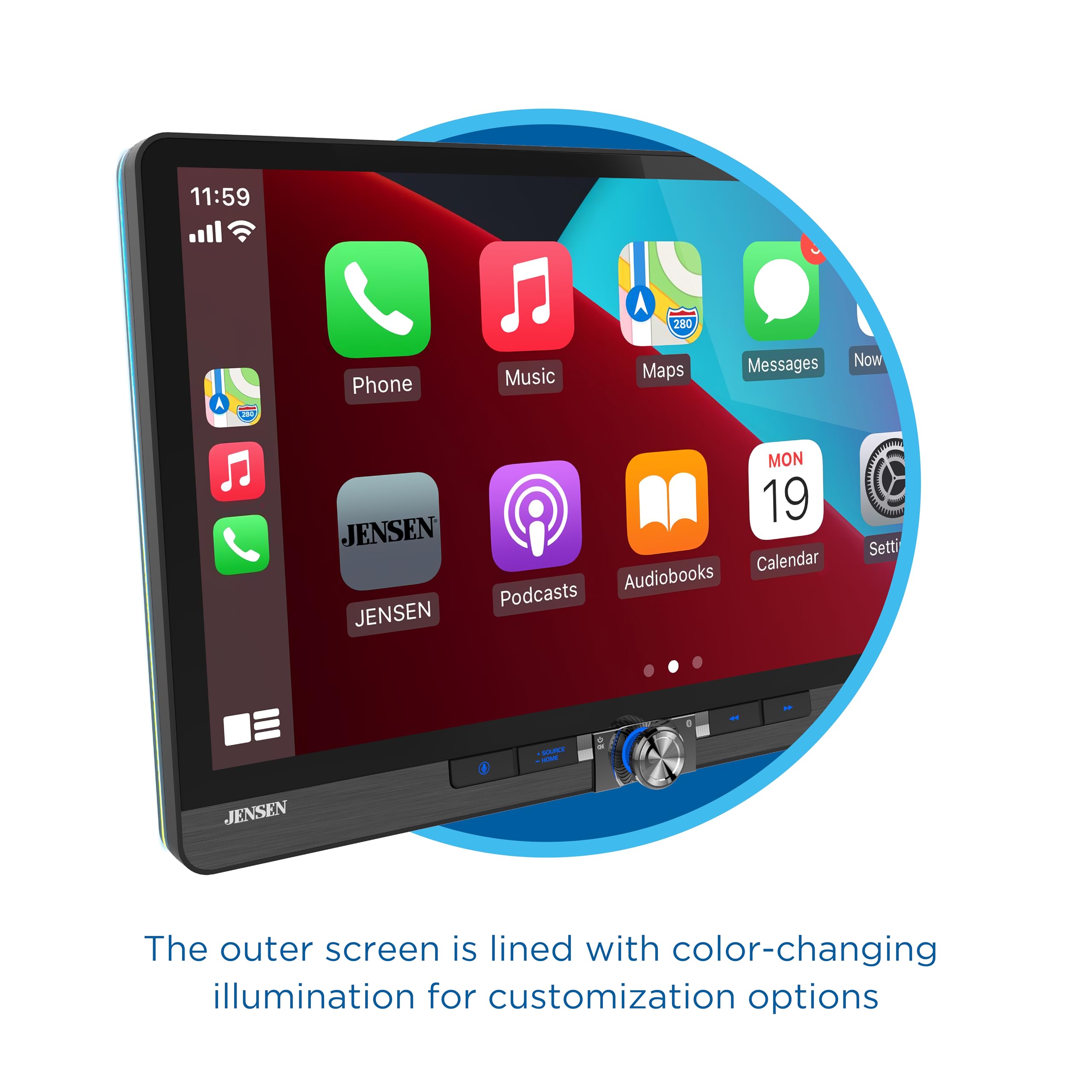 JENSEN J5CA14 14-inch Certified Apple CarPlay Android Auto Wired or Wireless | Maestro & Metra Axxess Ready | Single & Double DIN Car Stereo | SiriusXM Ready | Bluetooth | Front & Rear Camera Inputs