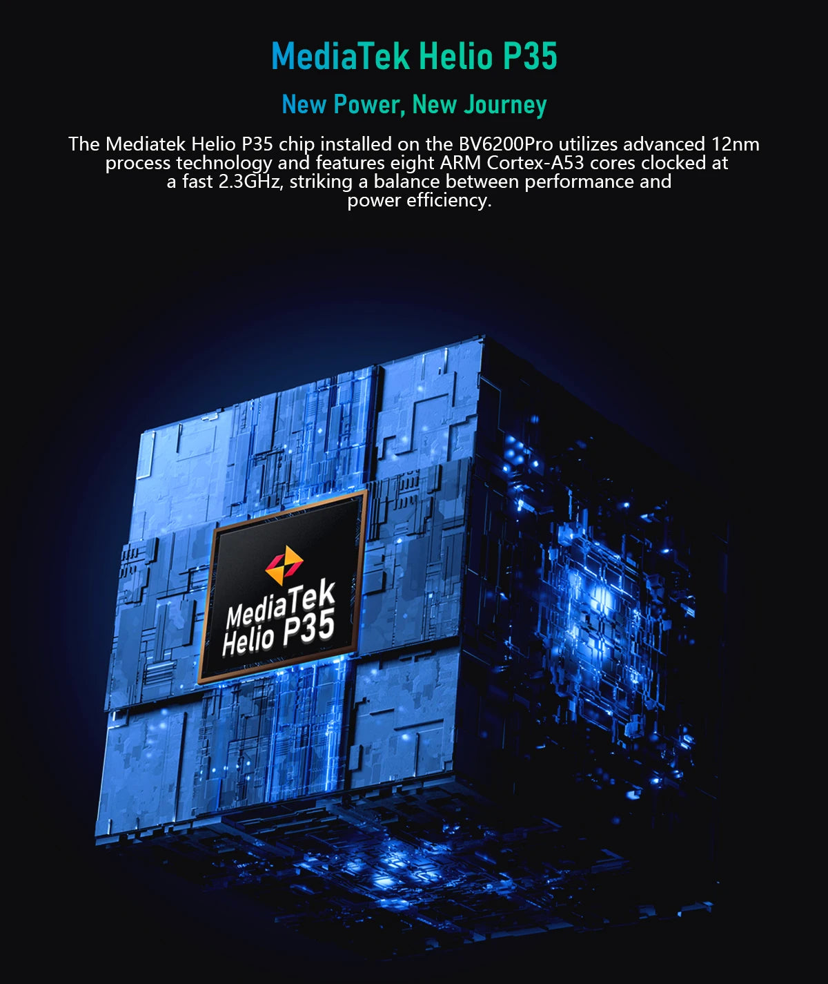 CPU : MTK Helio 35, Octa core, 4*A53 2.3GHz+4*A53 1.8GHz