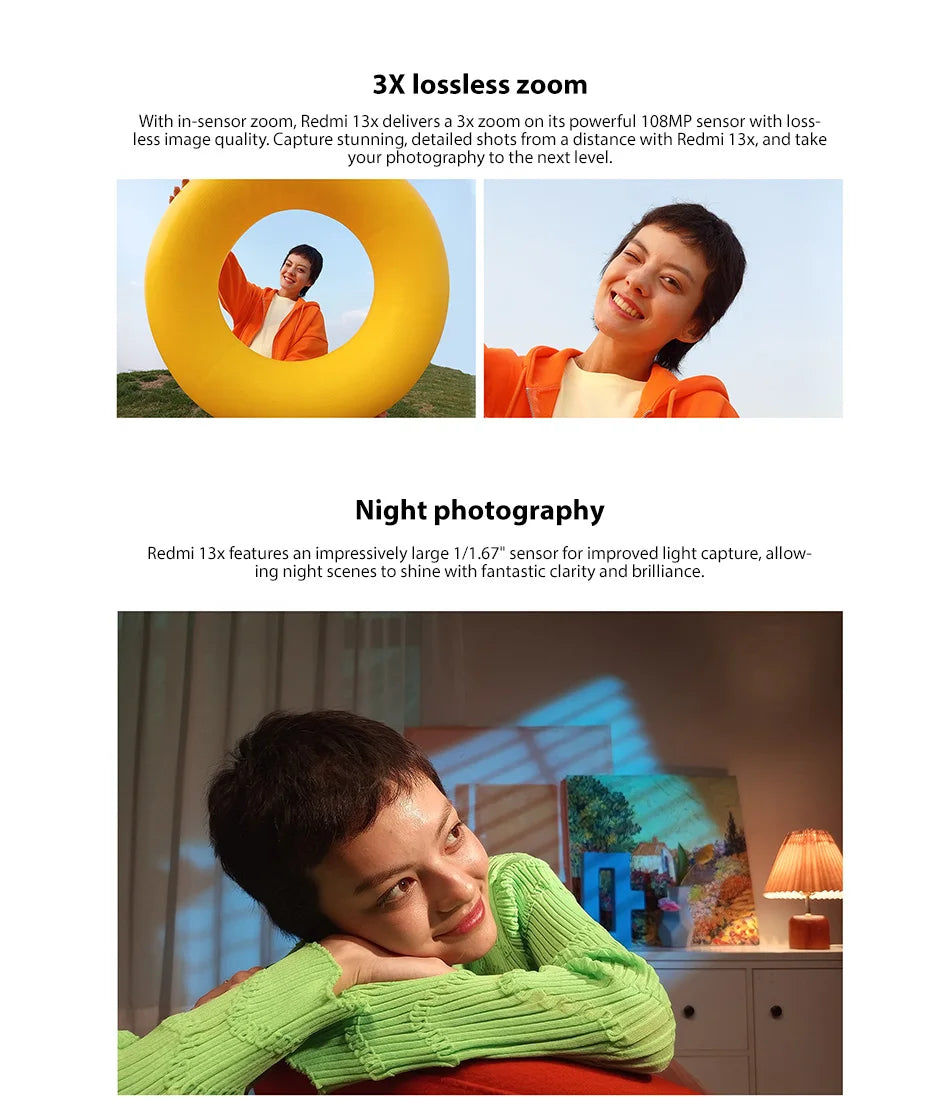 Global Version Xiaomi Redmi 13X Smartphone MTK Helio G91 Ultra 108MP super clear camera 6.79" FHD+ display 33W fast charging