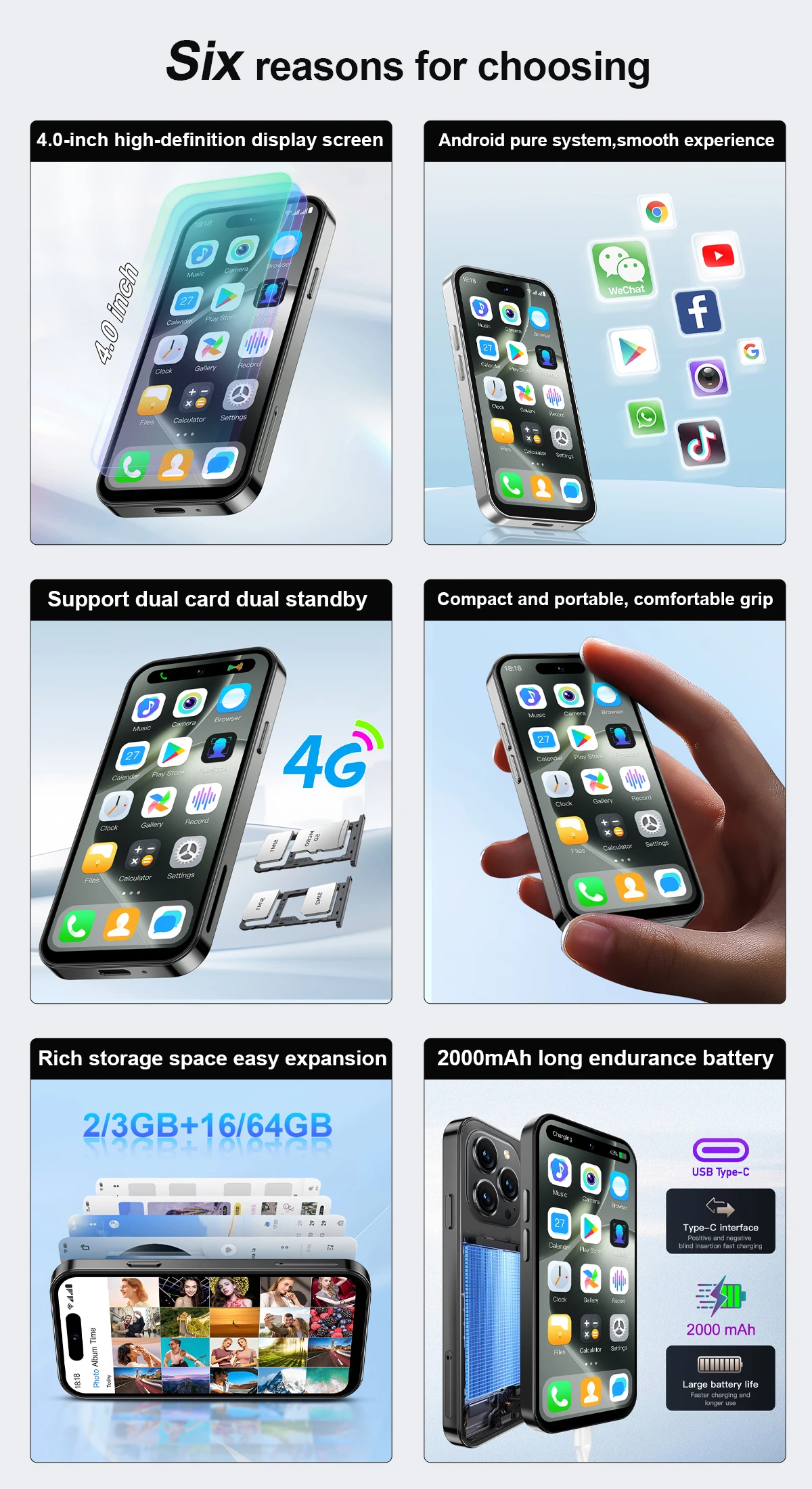 SERVO S16 Mini 4G Network Small Smartphone 2 SIM Standby Android 12.0 System Play Store WiFi GPS 4.0" Screen Palm Cellular Phone