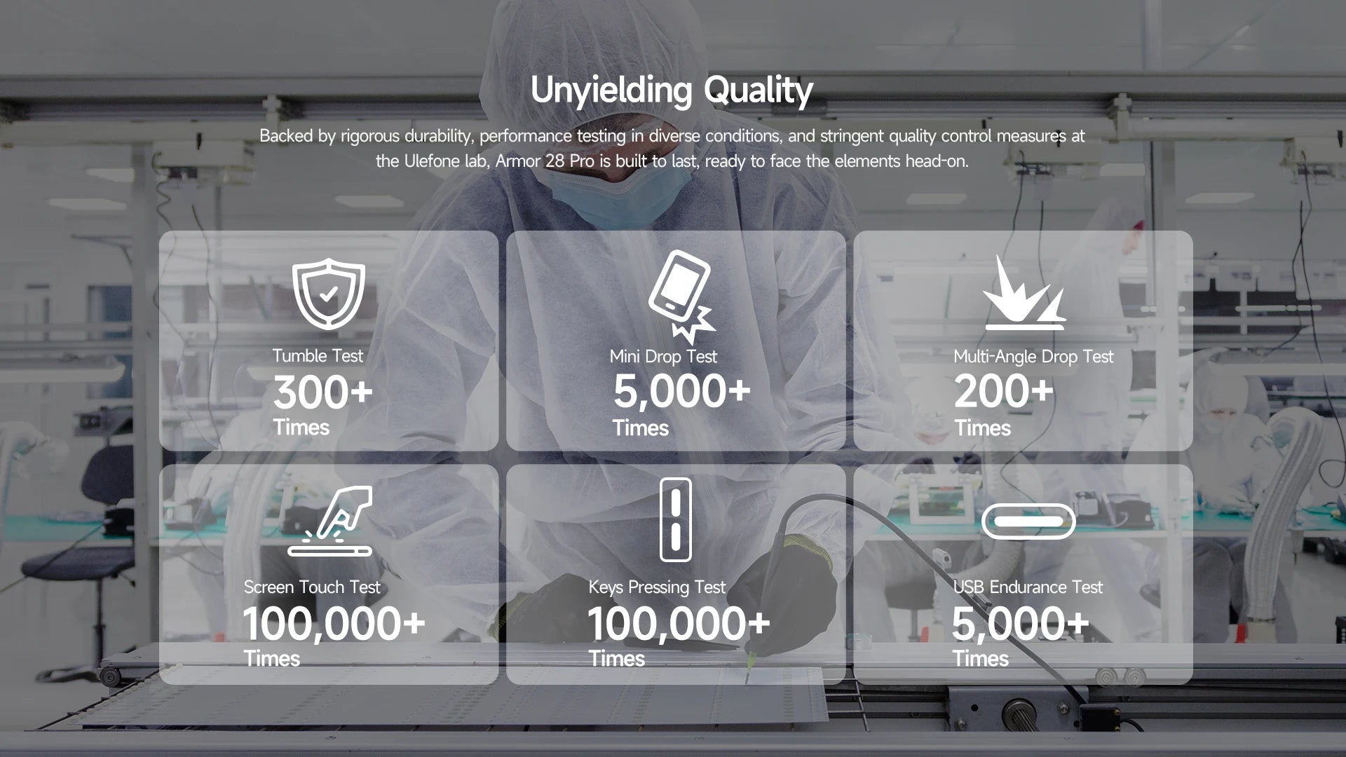 Armor 28 Ultra is splash, water, and dust resistant and was tested under controlled laboratory conditions with a rating of IP68 under IEC standard 60529 (maximum depth of 2 meters up to 30 minutes). Charger and accessories are not water-resistant. Splash, water and dust resistance are not permanent and might decrease as a result of normal wear. Do not attempt to charge a wet Armor 28 Ultra. Liquid damage not covered under warranty.