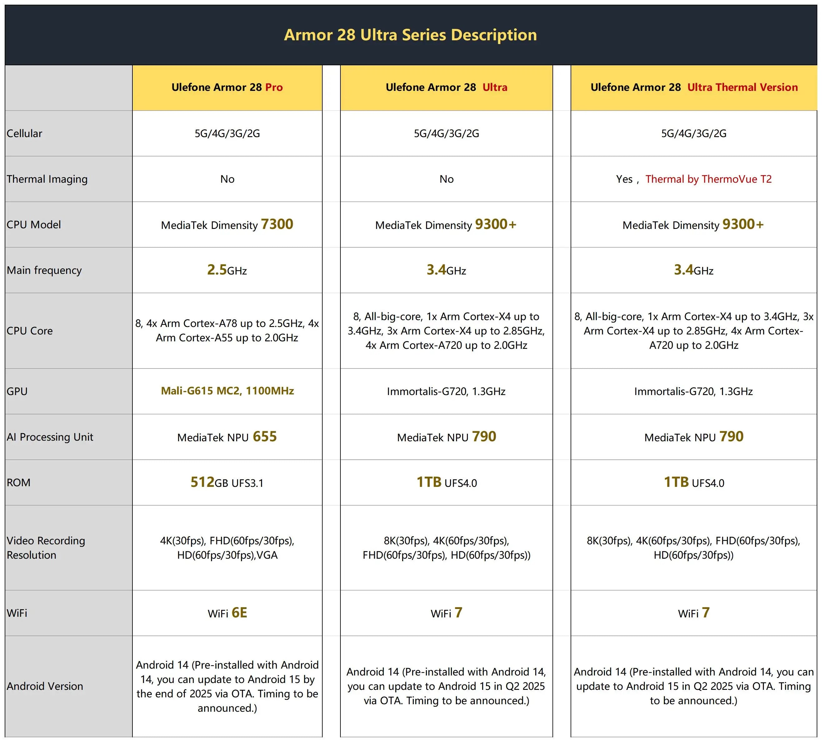 Ulefone Armor 28 Pro 5G AI Rugged Phone 512GB ROM Smartphone 120W MTK Dimensity 7300 10600mAh 6.67”AMOLED 64MP Mobile phone