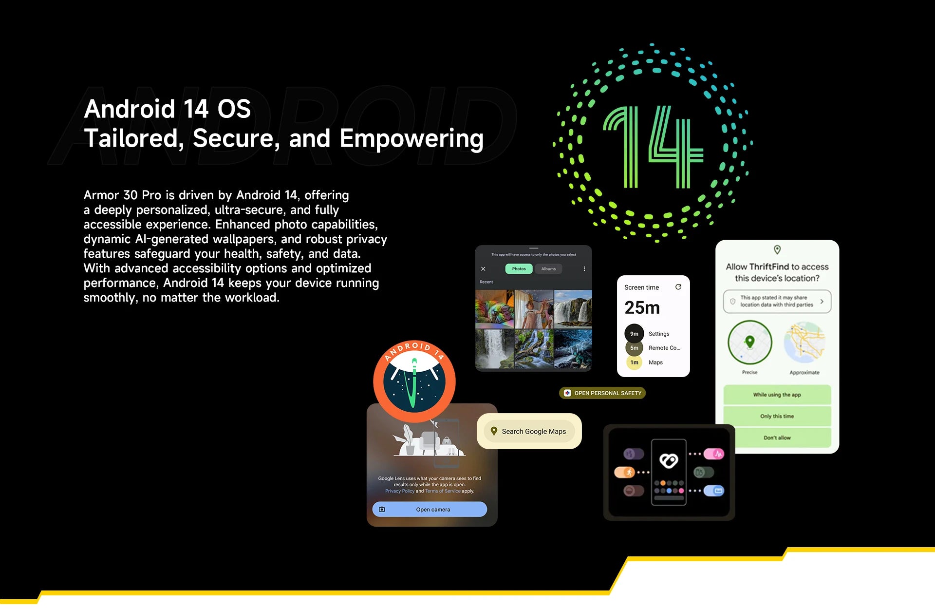 Ulefone Armor 30 Pro 5G Rugged Phone Android 14 Smartphone 6.9" 120Hz 32GB+512GB 12800mAh Night Camera 64MP NFC 66W