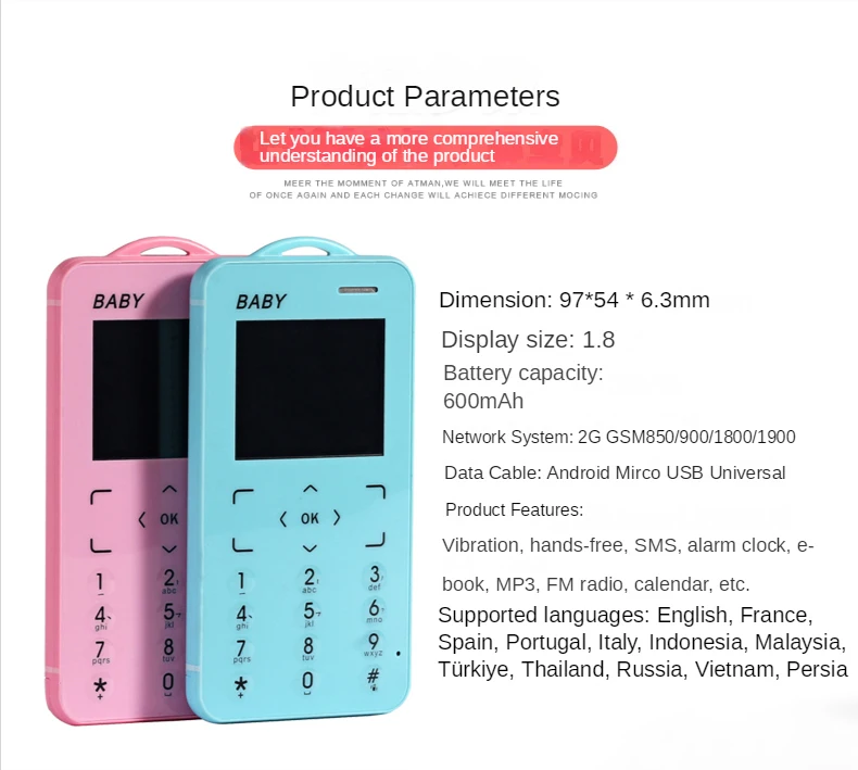 Unlocked Super Mini Card Mobile Phone 1.77 Inch 2G GSM Single SIM MP3 Telephone Bluetooth Dialer FM Blacklist Student CellPhones
