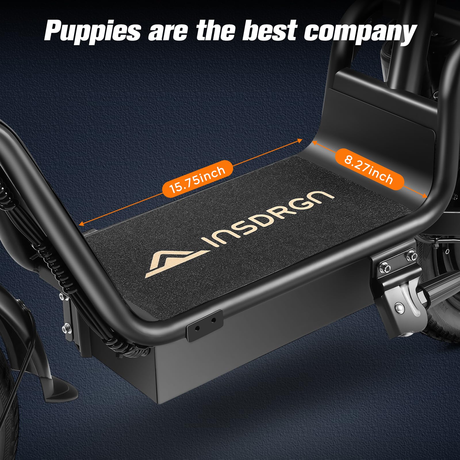 • Enhanced Safety Features:Safety is paramount with the INSDRGN electric scooter. It features dual disc brakes for efficient and responsive stopping power. The low center of gravity from the seated position adds stability, ensuring a secure ride at all times.