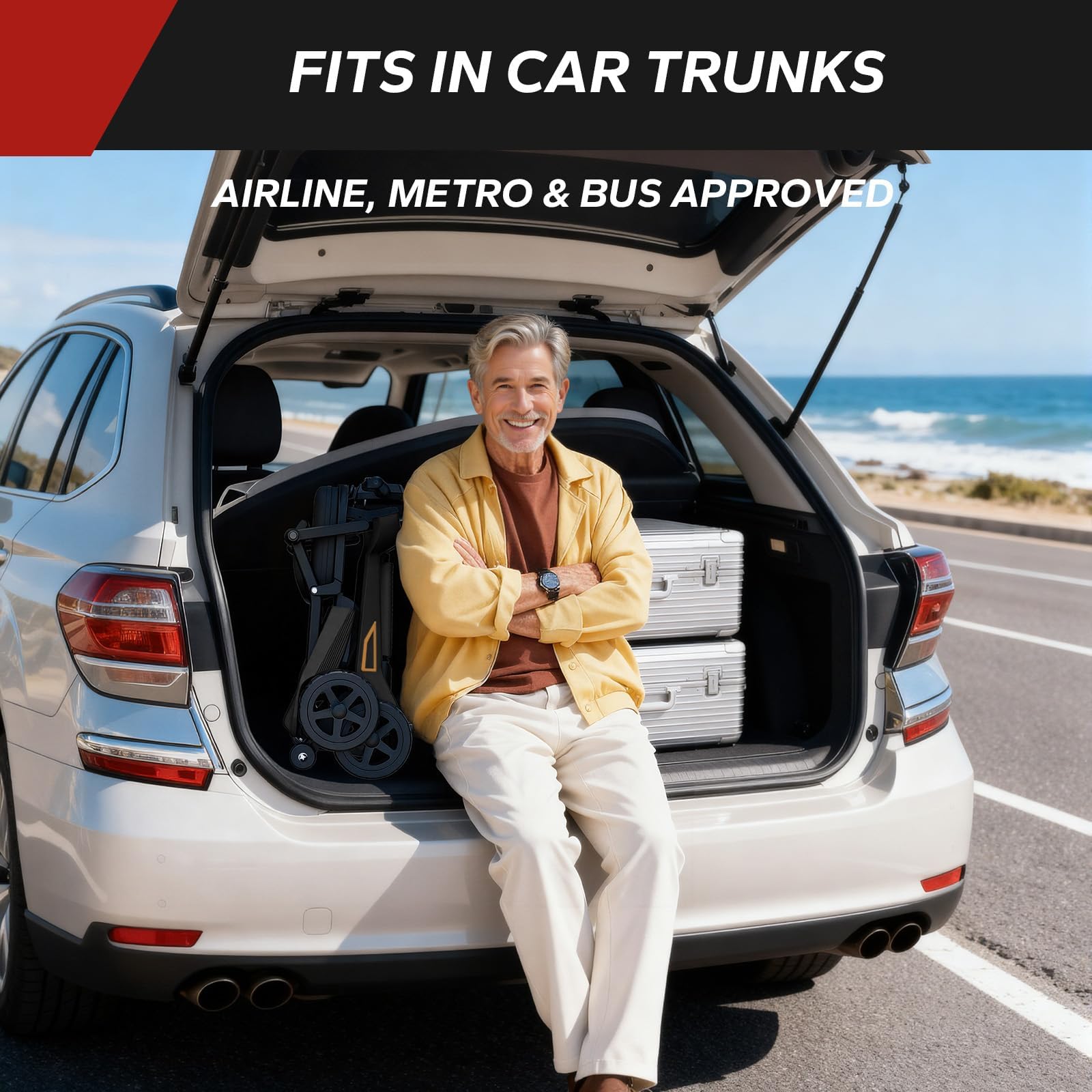 - One-Second Folding & Ultra-Compact: This scooter folds down in just one second into an ultra-compact size, enabling effortless storage in car trunks, tight closets, and airplane cabins. It's the ideal portable solution for active seniors