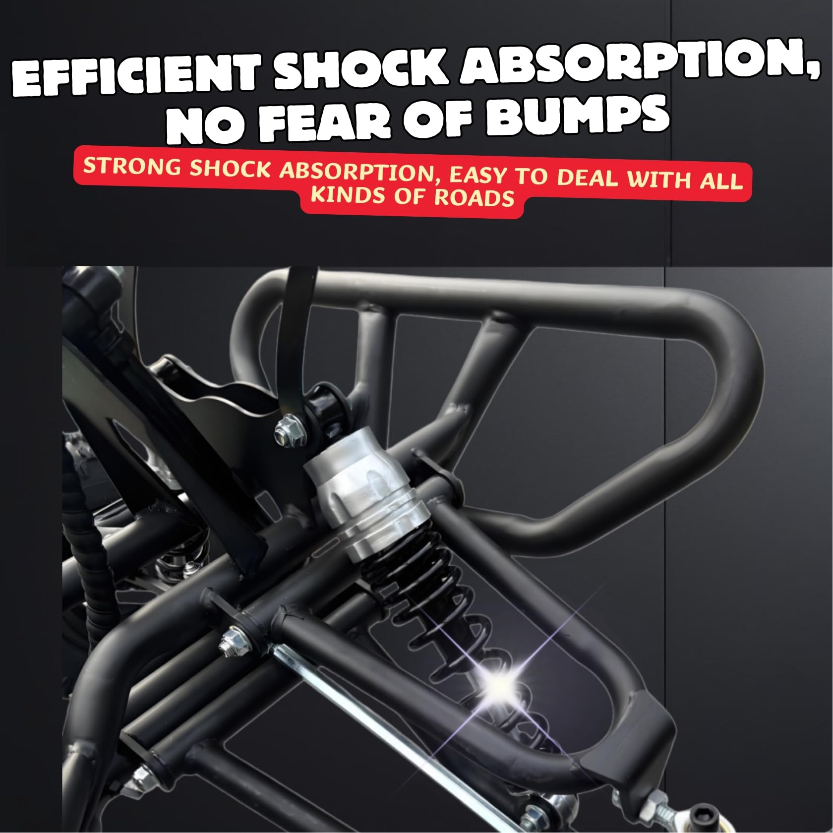 - Conquer All Terrains Safely Equipped with 6'' knobby tires tackling mud, grass, and trails. 3-speed modes adapt to beginner or expert riders. Built for off-road karting adventures with stable steel frame (50"x36"x26")
