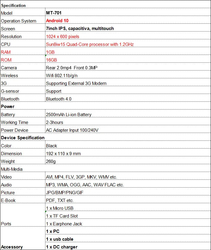 New Arrival 7 INCH 1GB RAM 16GB ROM Tablet PC Quad Core Android 10 Tablet PC MT-701 Sun8iw15 Quad-Core