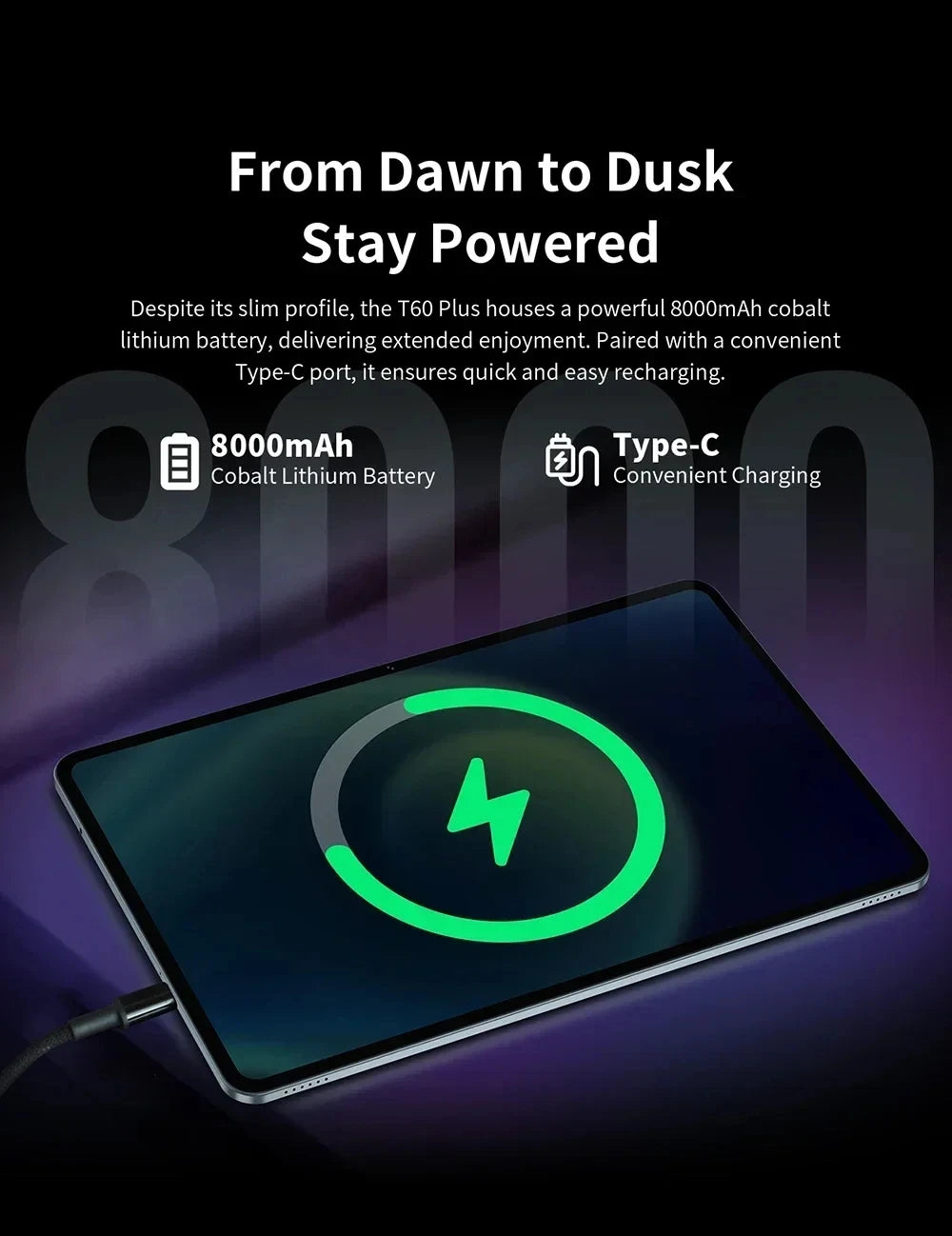 *8000mAh high-power Type-C charging
