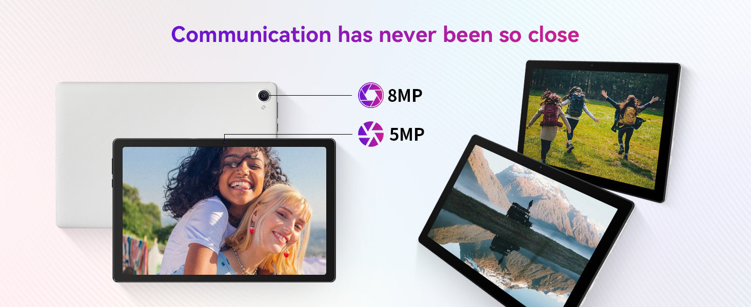【5000mAh Battery & 5MP+8MP Dual Camera】 The tablet is equipped with a 5000mAh battery with high battery life for long hours of operation, whether for work, study or entertainment; this 10-inch tablet also has a 5MP front camera and 8MP rear camera that meet both photography and video call needs.