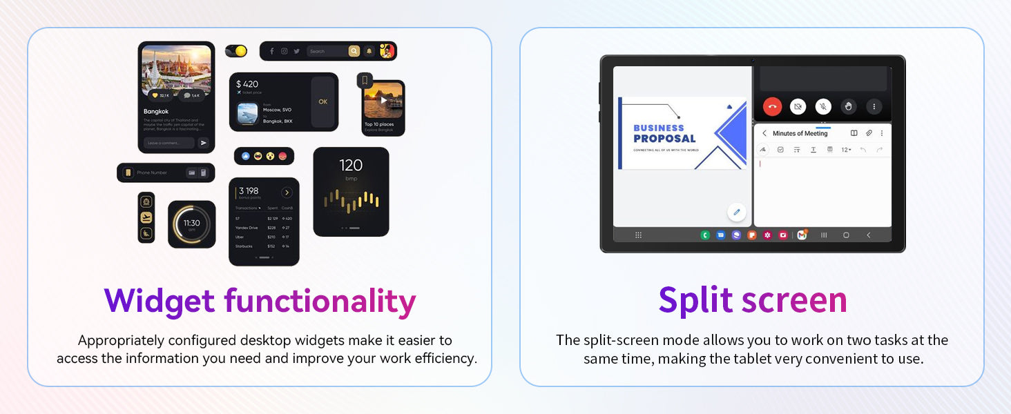 【Latest Android 14 and Octa-Core System】This C10 tablet is equipped with the latest Android 14 system and a 2.0GHz octa-core processor, which not only generates little heat and consumes little power, but also works more gently and faster, greatly improving the efficiency and convenience of using the tablet. Android 14 system has improved privacy protection and personal security.