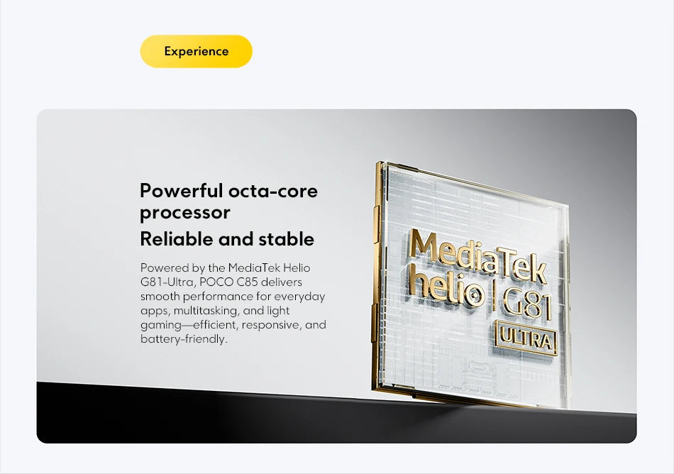 CPU -----------MediaTek Helio G81-Ultra processorOcta-core