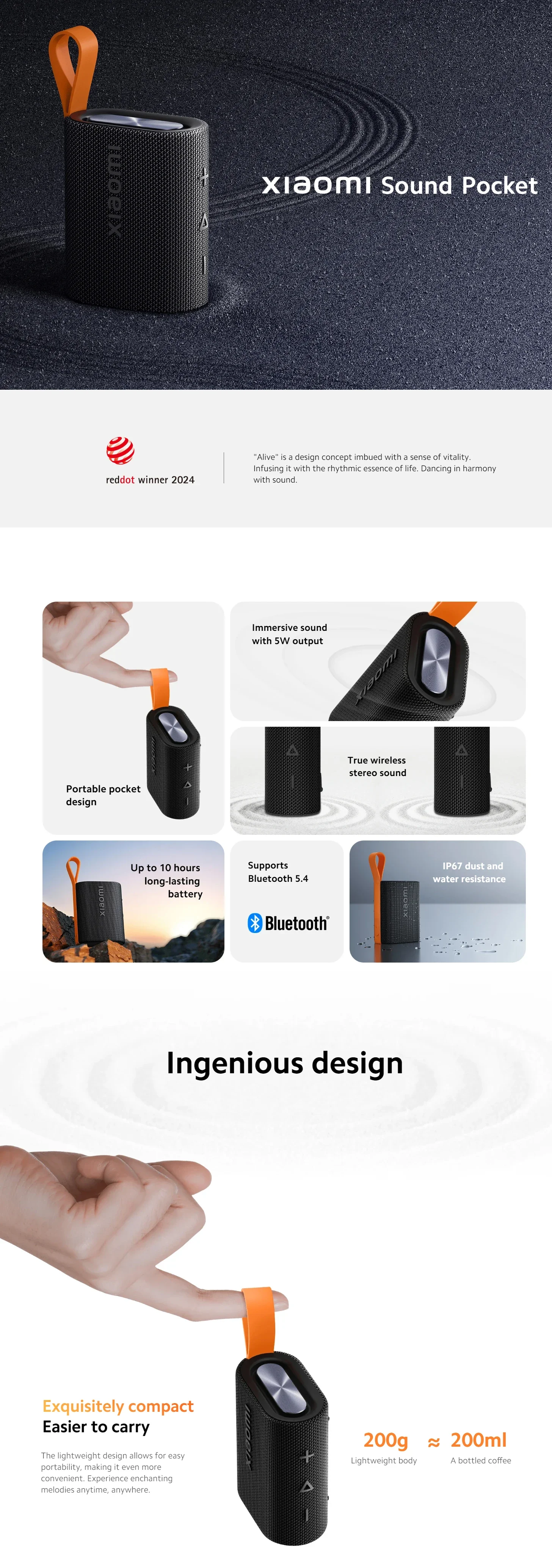 Global version Xiaomi Sound Pocket IP67 Bluetooth 5.4 Portable Speaker TWS Stereo Combo 1000mAh 10-Hour Battery Life Microphone
