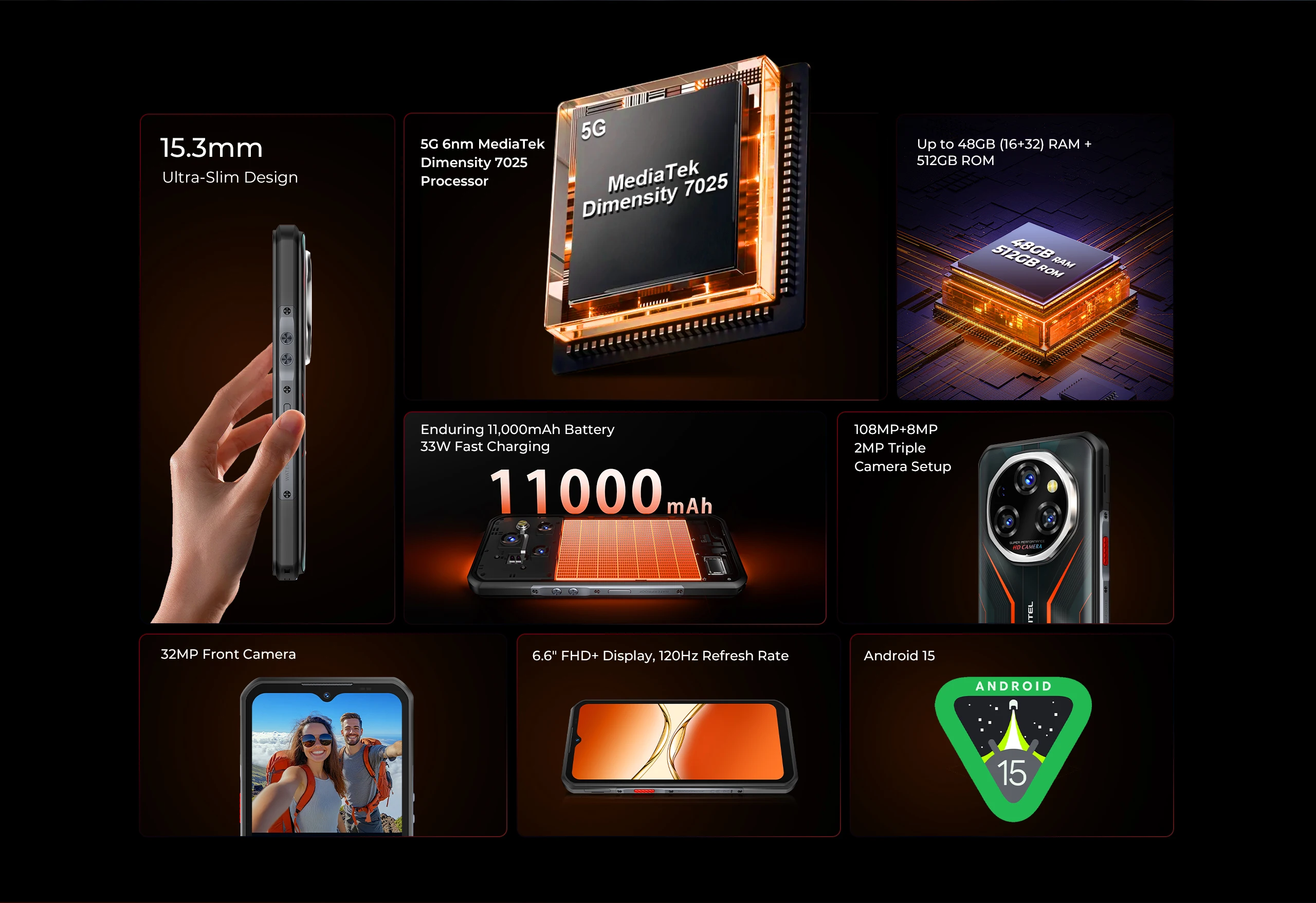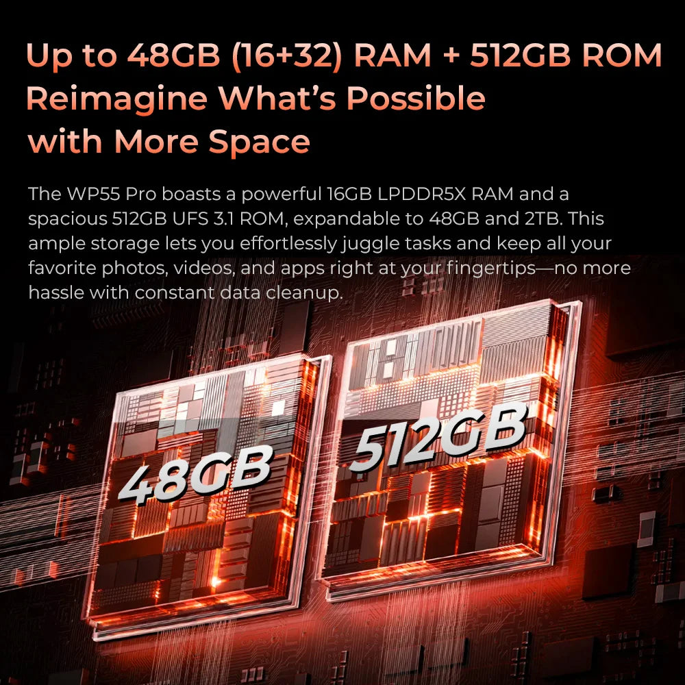 Oukitel WP55 Pro 5G Rugged Smartphone 16GB+512GB 33W Android15 Mobile Phone 11000mAh 6.58" FHD+ 108MP Camera oukitel Cell Phone