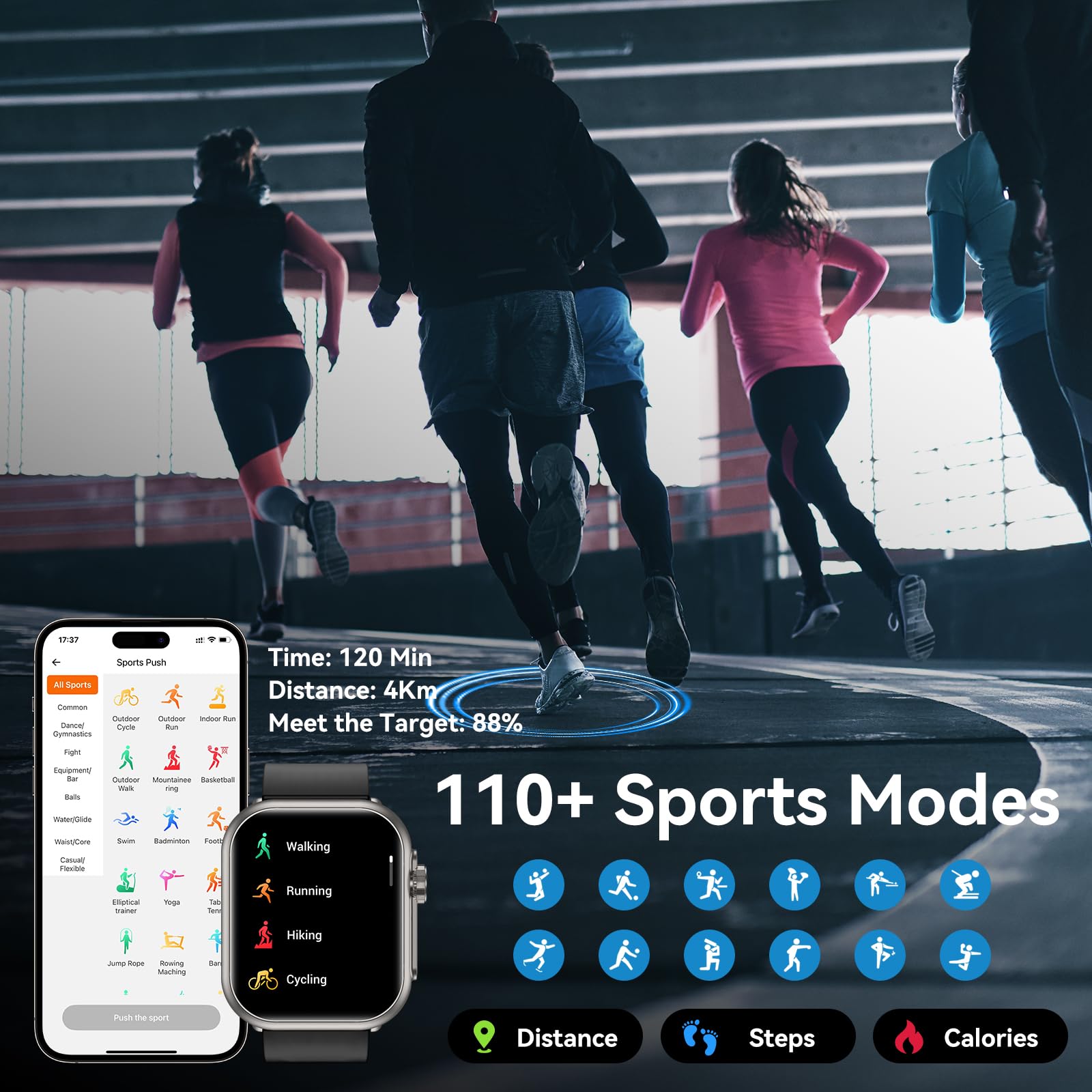 • 120+ Sport Modes and IP68 Waterproof: Fitness watch comes with 110+ sport modes to meet all your fitness needs. When you exercising, the watch precisely tracks your performance metrics. This smartwatch is rated with an IP68 waterproof standard
