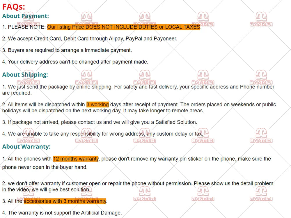 4. Phone accessories : All for used phone will not be original, but with good quality, similar as original. Maybe some specifications wrote on the box are not correct, but the phones are original with official correct specifications. Any disputes like "Fake accessorieswill not be accepted, and no refund will be made for this kind of situation.