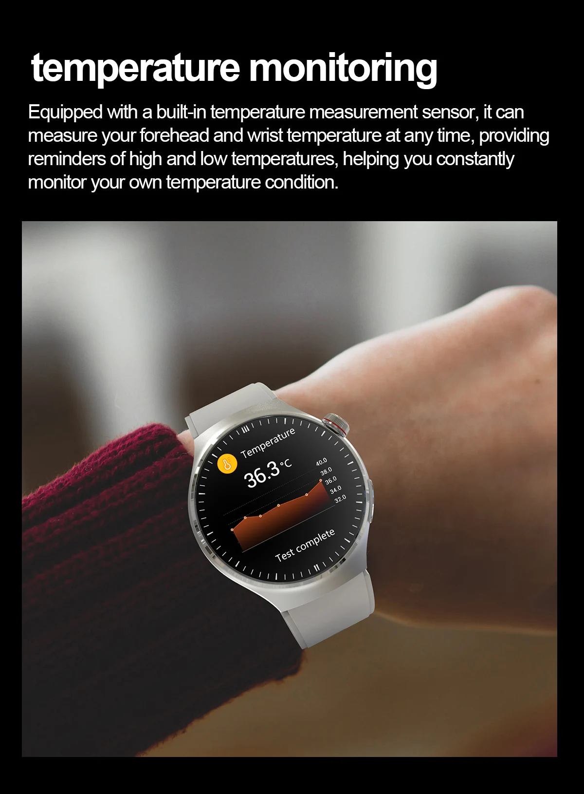 2025 New ECG Blood Pressure Blood Oxygen Blood Lipids Uric Acid Heart Rate Temperature Monitor AMOLED Bluetooth Call Smart Watch