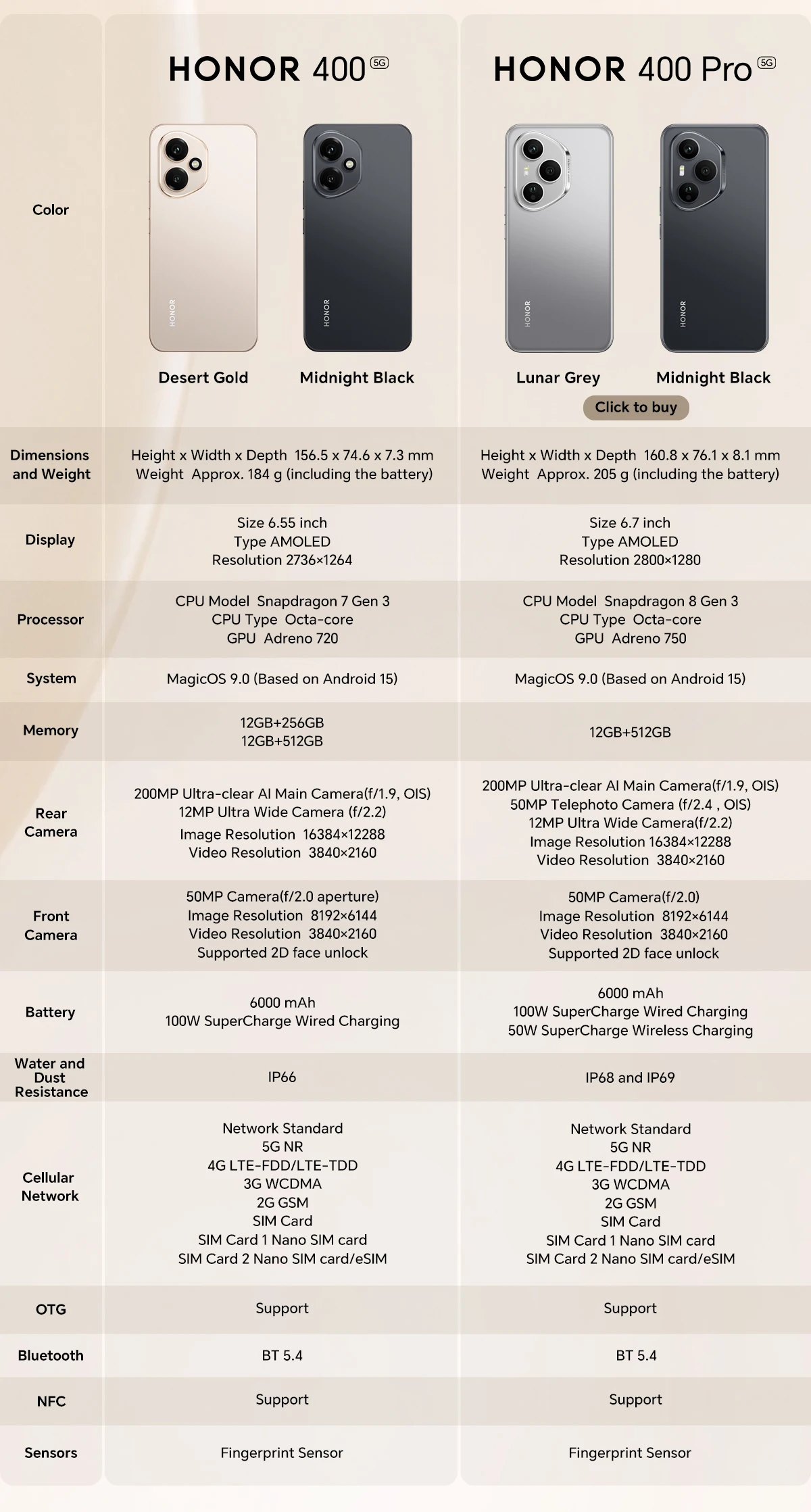 2025 New HONOR 400 5G Global Version Smartphone 6.55'' AMOLED Screen 200MP Camera 6000 mAh 100W SuperCharge OTG NFC
