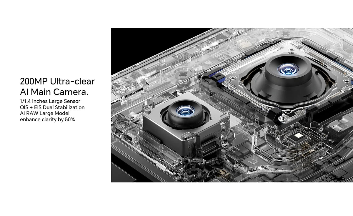 200MP Ultra-clear AI Main Camera(f/1.9, OIS)