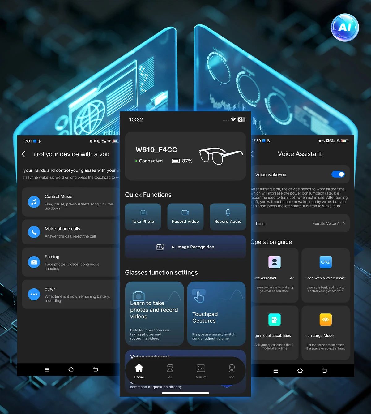Function: Music,Camera,VIDEO,Voice Assistant,calling,Sun protection,Anti-blue light,AI translator,Chat gpt,Ai