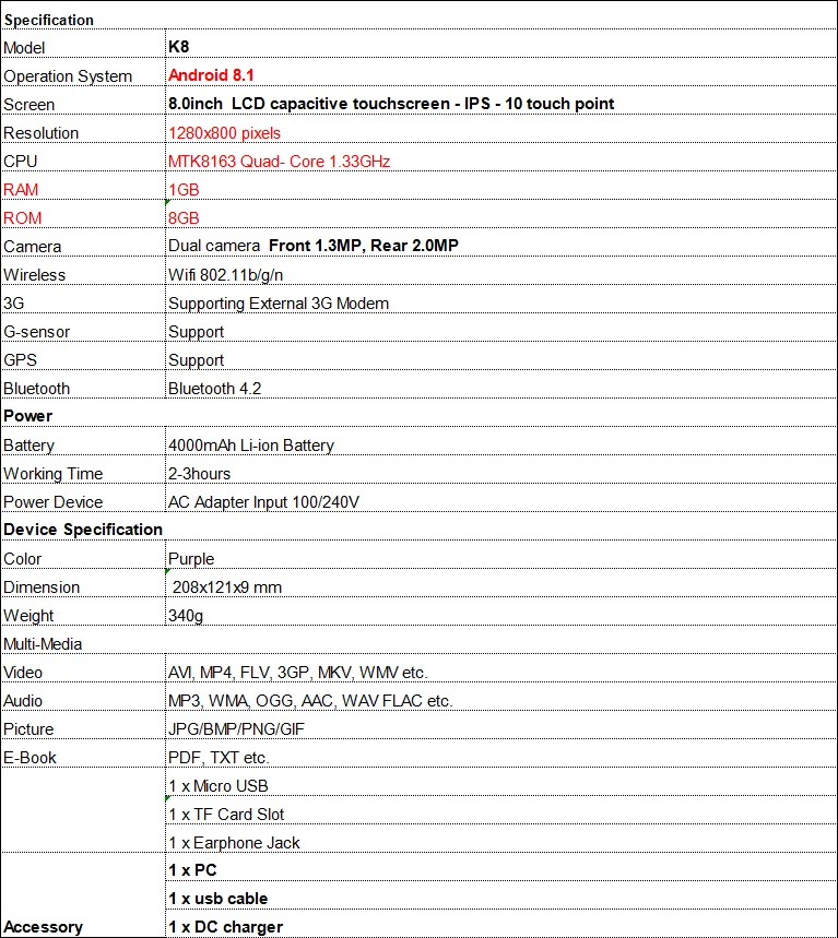 Color: 8 inch 3G 32G