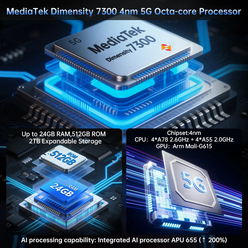 Powerful MTK 7300 5G 4nm 2.5G Hz SoC