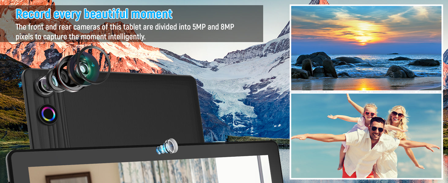 ๐๏ธใ10.1-๐๐ฃ๐๐ ๐๐พ๐ฟ ๐ฟ๐๐จ๐ฅ๐ก๐๐ฎใThis Android tablet not only comes with a 10-inch HD IPS LCD display, but also features an ultra-high resolution of 1280x800 as well as an ultra-narrow 7mm bezel for a wide and bright field of view, which brings you truer colors and clearer images for perfect visual enjoyment while working, watching videos and playing games. The tablet also features a crisp 5MP front camera and 8MP rear camera for your daily needs, providing you great photos and clear video chats.