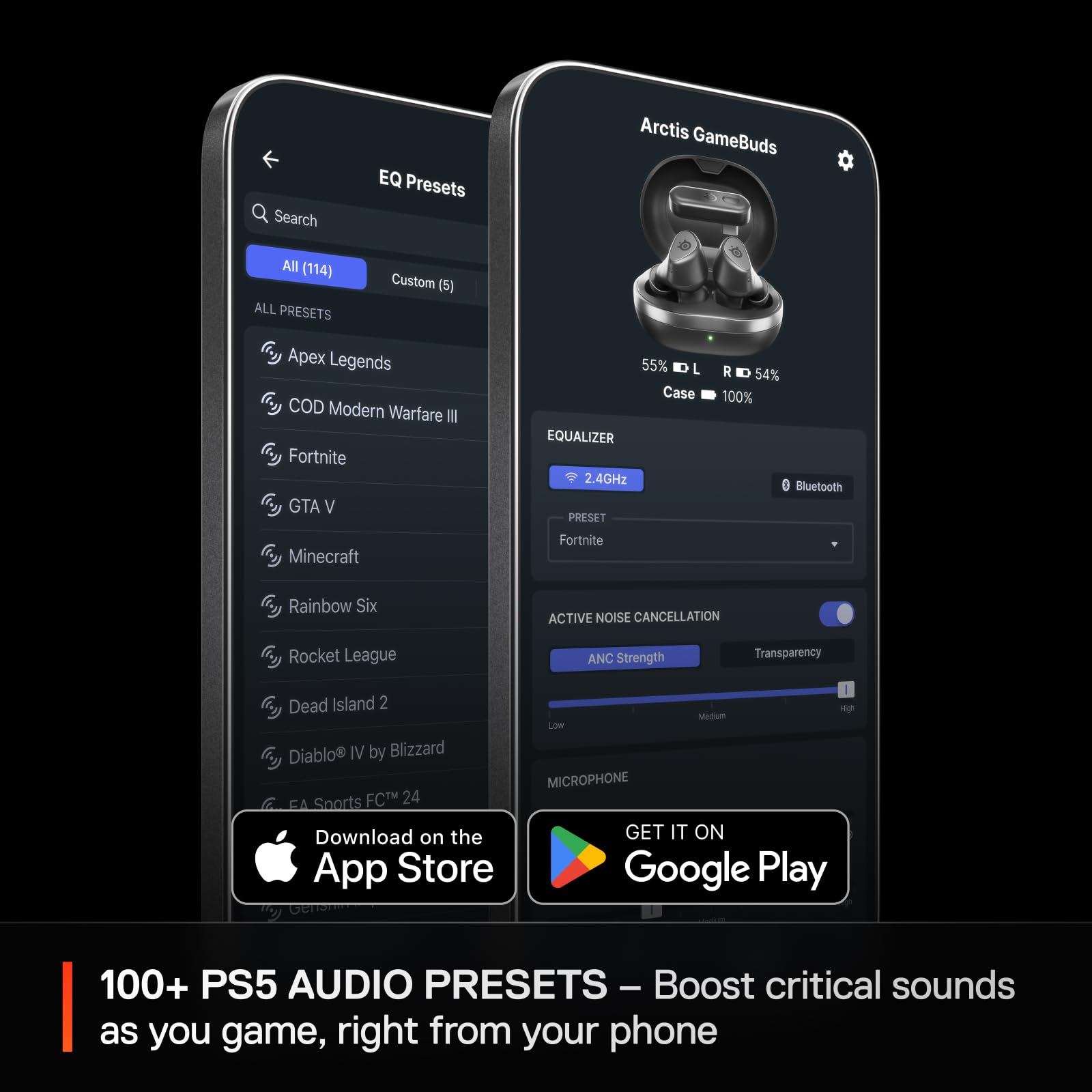 • 100+ GAME AUDIO PRESETS — Easy-to-use SteelSeries Arctis Companion App contains 100+ presets to boost critical sounds in game on your PS5, PC and more