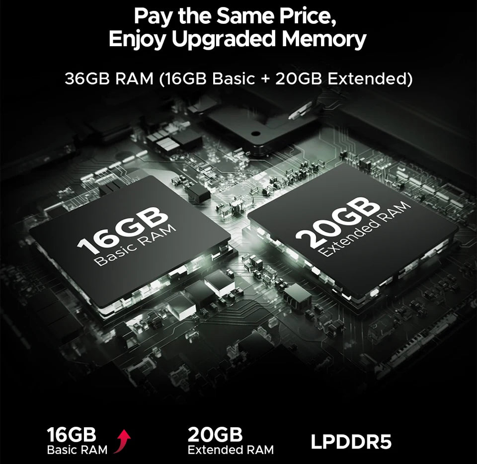 36GB RAM (16GB+Up to 20GB Extended RAM) / 512GB ROM |