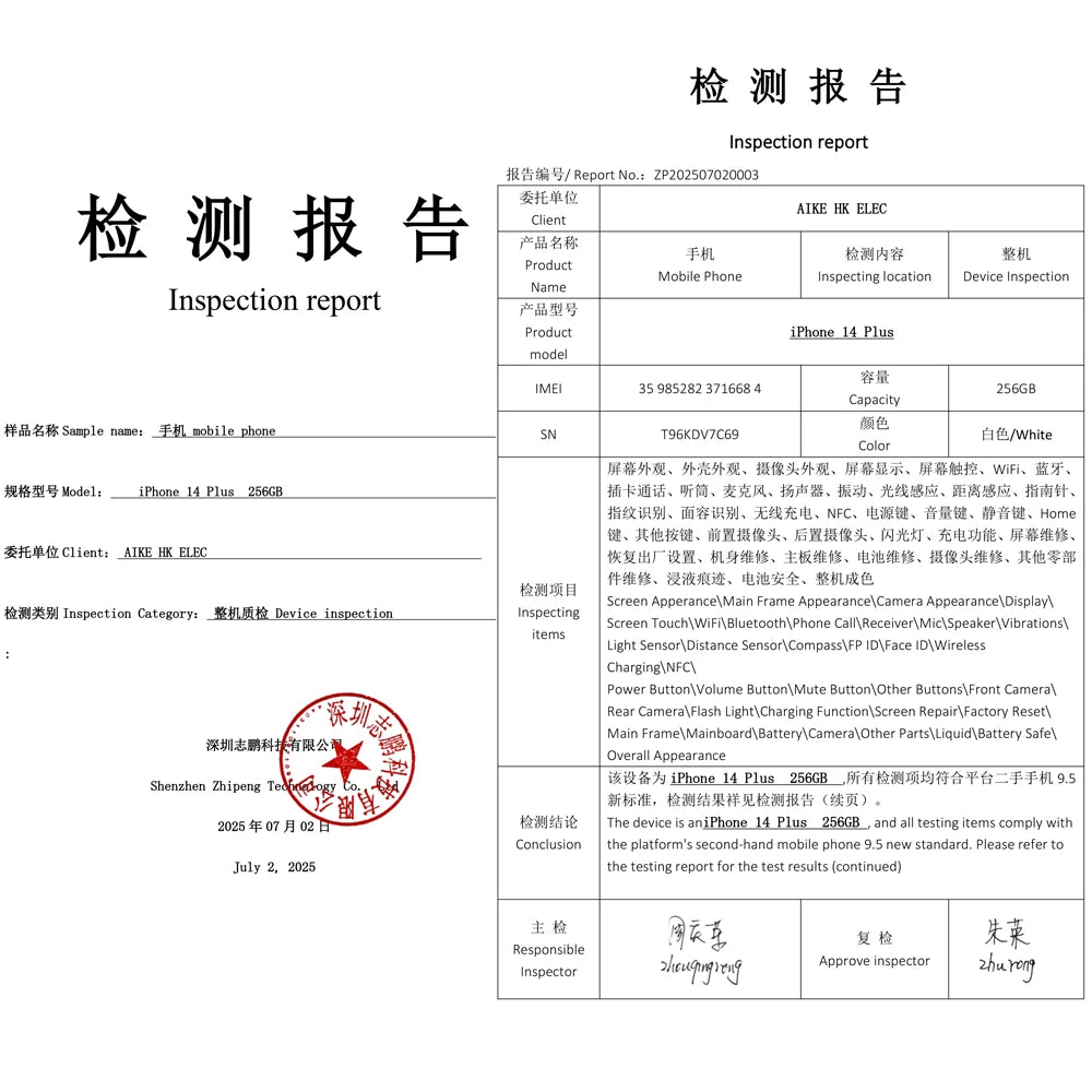 Refurbished phone iPhone 14 Plus 5G 128/GB ROM 6GB RAM "Genuine Super Retina Ole Face ID excellent condition