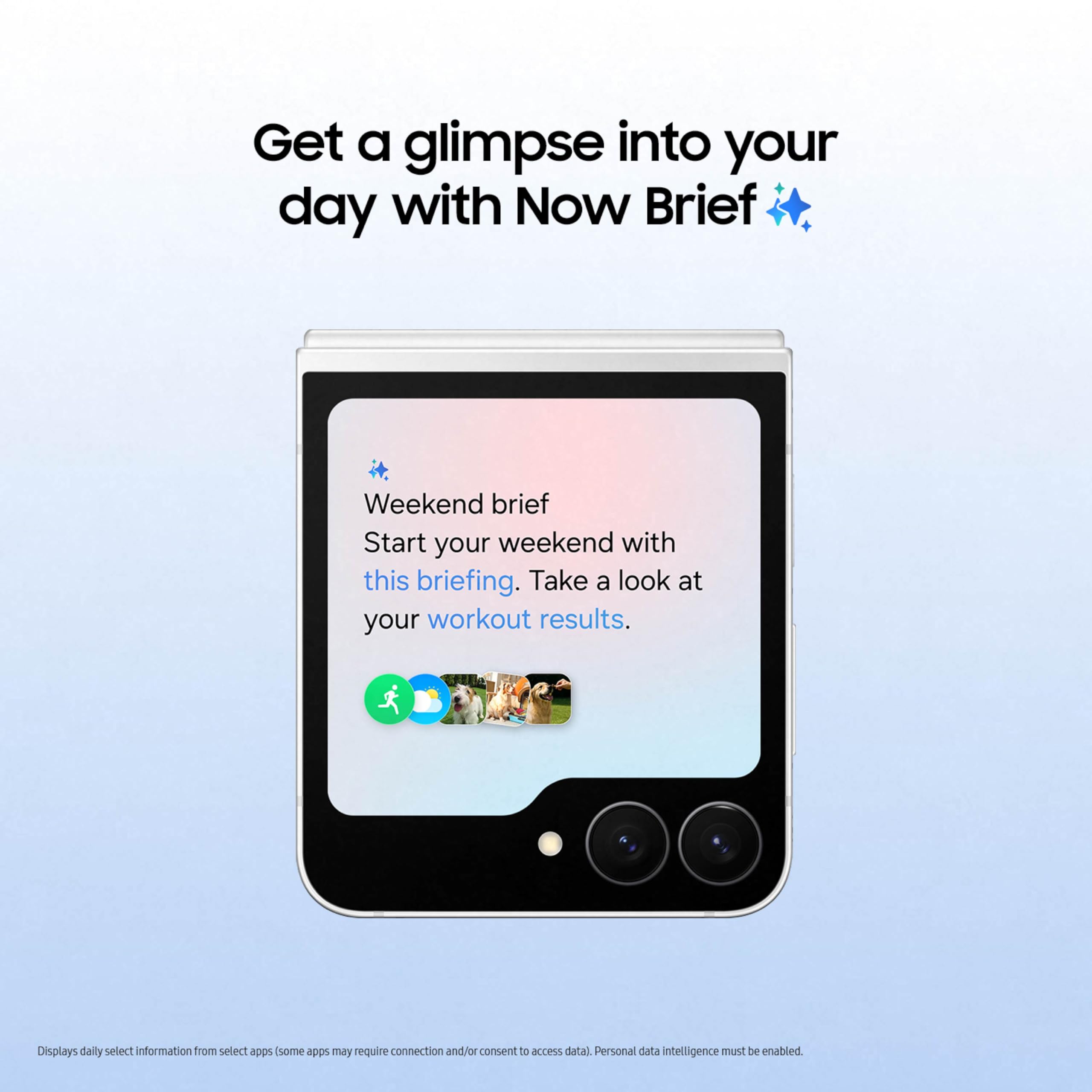 • OPEN LESS. DO MORE: With Gemini Live and your favorite apps on FlexWindow, Galaxy Z Flip7 FE does more before you even open it.¹
