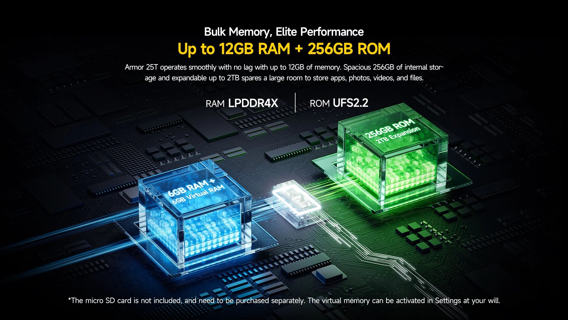 • *The micro SD card is not included, and need to be purchased separately. The virtual memory can be activated in Settings at your will.
